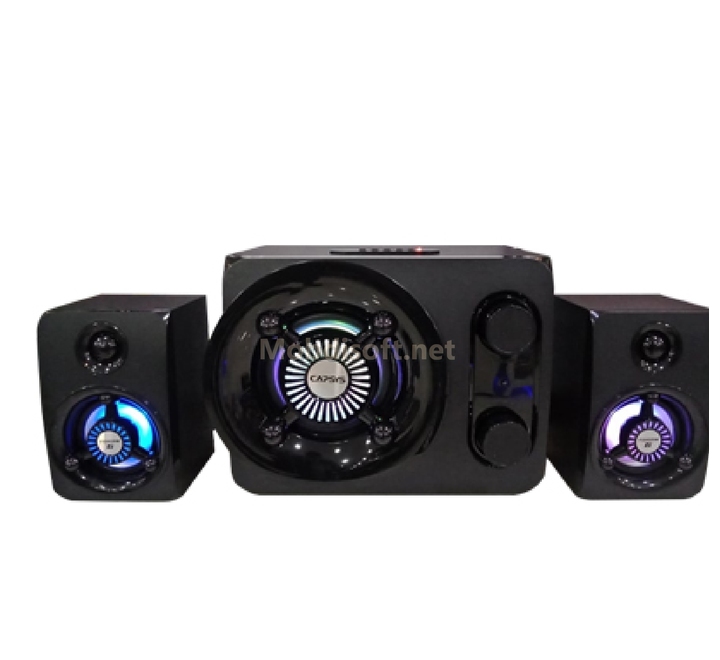CAPSYS TORAN 6 2.1 LED 7 couleurs. Ce dernier est composé de deux enceintes et d’un caisson de basse, BLUETOOTH, un port USB ainsi qu’un lecteur de carte SD. Retrouvez également la radio.